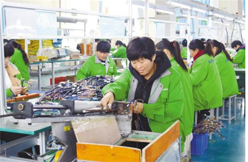 近年來(lái),沈丘縣凱旺電子公司先后在石槽集鄉(xiāng)、馮營(yíng)鎮(zhèn)、付井鎮(zhèn)等9個(gè)鄉(xiāng)鎮(zhèn)設(shè)立了27個(gè)扶貧車間,吸納了700多人就業(yè),其中包括160名貧困群眾,人均月工資為2000至3000元。圖為扶貧車間里的生產(chǎn)場(chǎng)景。