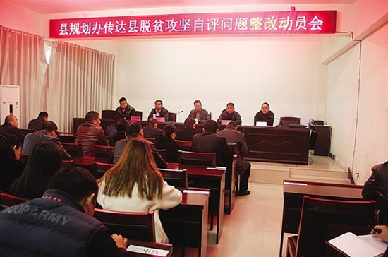 縣規(guī)劃辦傳達(dá)縣脫貧攻堅自評問題整改動員會。 (記者 付永奇 通訊員 莊正富 攝)