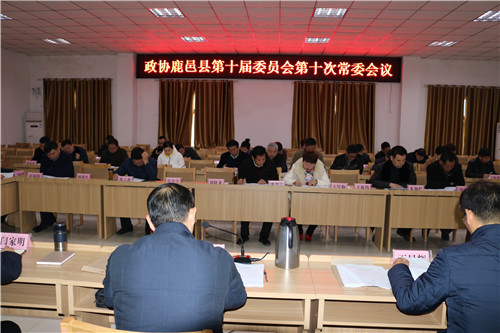 12月19日上午,政協(xié)鹿邑縣第十屆委員會第十次常務(wù)會議在縣委黨校五樓會議室召開。縣政協(xié)主席雷申、副主席丁顯輝、李蘭明、宋克言等出席會議??h委常委、統(tǒng)戰(zhàn)部長閆家明列席會議。41名政協(xié)常委參加會議。