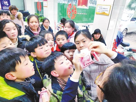 “歡迎各位小記者的到來,大家在過年的時候有沒有收到壓歲錢呢?”項(xiàng)城中銀富登村鎮(zhèn)銀行公司部經(jīng)理馮靖涵的一句話頓時讓小記者們從緊張的情緒中釋放出來。“我的壓歲錢,媽媽幫我存在銀行里了!”“我壓歲錢還放在存錢罐里,有時候還會拿出來數(shù)一數(shù)!”……小記者們的回答讓家長們都不由地笑起來。