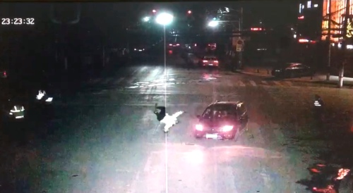 當(dāng)晚23時23分,這輛車號為P733B1的黑色東風(fēng)風(fēng)行SUV汽車出現(xiàn)在路口。在強(qiáng)行闖過民警設(shè)立的卡點時后,又試圖左拐向文化路方向逃離,在路口西北角執(zhí)勤的路查四中隊協(xié)警石巖快速上前攔截。孰料,該車不但未停,反而加速向前沖,石巖躲閃不及被撞到該車擋風(fēng)玻璃后又被撞出數(shù)米遠(yuǎn),重重地摔在馬路上。