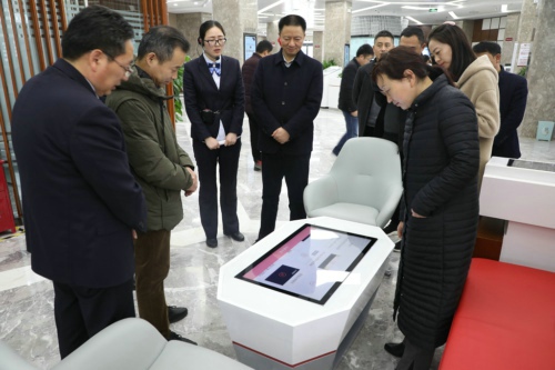 調(diào)研組一行首先來到商水農(nóng)商銀行陽城支行查看“普惠+數(shù)字”銀行建設(shè)情況。陽城支行行長簡要介紹該網(wǎng)點基本情況、服務(wù)理念后,引導(dǎo)調(diào)研組一行依次參觀了普惠授信服務(wù)區(qū)、數(shù)字智能服務(wù)區(qū)、電子銀行體驗區(qū)、保管箱服務(wù)區(qū)、貴金屬服務(wù)區(qū)等特色功能區(qū),并詳細介紹了每個功能區(qū)的作用和特點。調(diào)研組一行現(xiàn)場體驗了智能導(dǎo)覽臺 、客戶互動桌等智能設(shè)備,對該網(wǎng)點定位準確、理念前衛(wèi)、設(shè)備先進、功能齊全、分區(qū)合理,為客戶提供全方位的金融服務(wù)表示贊賞。