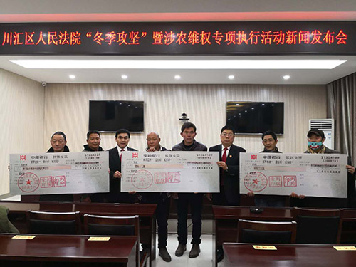 12月26日下午,川匯區(qū)人民法院召開“冬季攻堅”暨涉農(nóng)維權(quán)專項活動新聞發(fā)布會。周口日報等新聞媒體和川匯區(qū)法院執(zhí)行警務(wù)局40余名干警參加了座談會。發(fā)布會現(xiàn)場,共為三名農(nóng)名工代表發(fā)放自行款21.5萬元。