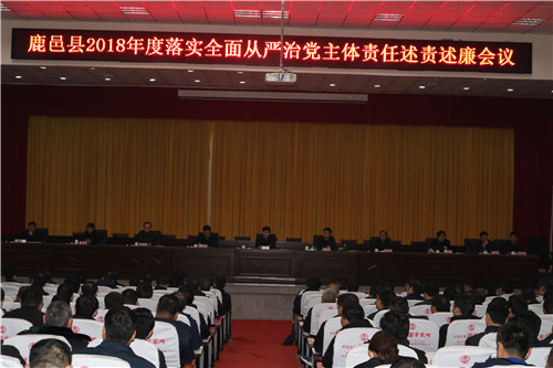 1月4日上午,鹿邑縣2018年度落實全面從嚴治黨主體責任述責述廉會議在縣委黨校一樓報告廳召開??h委書記梁建松出席會議并講話??h委常委、紀委監(jiān)察委主任韓林主持會議??h直各局委主要負責人、派駐紀檢組、巡查辦主要負責人以及各鄉(xiāng)鎮(zhèn)辦事處黨(工)委書記、紀檢書記參加會議。