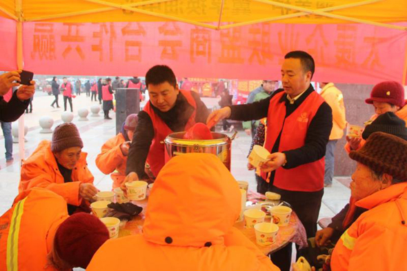 1月13日,為傳承臘八習(xí)俗、傳遞愛心,由太康縣工商聯(lián)主辦、太康縣企業(yè)聯(lián)盟商會承辦的以“一碗臘八粥 溫暖一座城 愛心在行動”為主題的臘八粥分享活動在縣人民廣場舉行,給起早貪黑不辭辛苦的城市美容師、保道路暢通的公安民警、救死扶傷的白衣天使、風(fēng)刮日曬的外賣小哥、高齡老人、老黨員等送去濃濃的溫情。