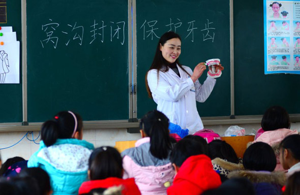 為加強口腔疾病健康教育和健康促進工作,提高兒童口腔疾病防治知識知曉率,近日,鄲城縣疾控中心組織口腔專業(yè)技術人員,到第三實驗小學開展“鄲城縣健康口腔助成長口腔健康教育活動”和“鄲城縣兒童口腔疾病綜合干預項目進校園活動”。在活動現場,口腔醫(yī)師為二年級學生上了三場生動的口腔健康教育課,詳細講解口腔疾病防治知識。
