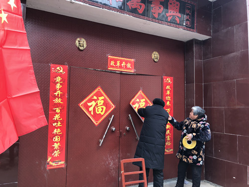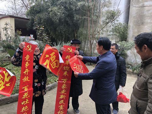 據(jù)了解,當(dāng)天下午時(shí)莊村黨支部訂制的3000多套春聯(lián),免費(fèi)贈(zèng)給448戶村民。記者看到,這些春聯(lián)的內(nèi)容都是承載著黨和政府的關(guān)懷,有的是歌頌改革開放的,有的是幸福報(bào)黨恩的。該村村民朱在靈領(lǐng)到春聯(lián)后立刻把春聯(lián)拿回家,他將門頭擦干凈后把春聯(lián)貼了上去。在門口懸掛著的國(guó)旗的襯托下,顯得格外喜慶?!按謇锩赓M(fèi)發(fā)這種帶黨徽的春聯(lián)已經(jīng)第三年了,這種春聯(lián)傳遞了黨的好聲音,推動(dòng)了群眾對(duì)黨的擁護(hù),現(xiàn)在村民的精神面貌也貌煥然一新?!敝煸陟`高興地說。