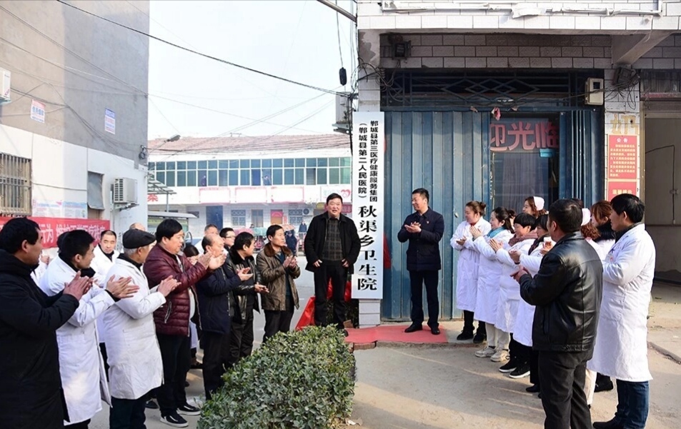 在秋渠鄉(xiāng)衛(wèi)生院,晉繼忠與秋渠鄉(xiāng)黨委負(fù)責(zé)人梁輝為鄲城縣第三醫(yī)療健康服務(wù)集團(tuán)(鄲城縣第二人民醫(yī)院)秋渠鄉(xiāng)衛(wèi)生院揭牌。