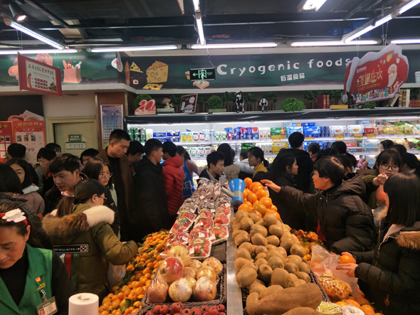 萬(wàn)果園超市內(nèi)年貨充足