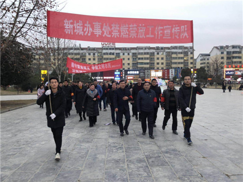 會后,黨工委書記張玉杰、辦事處主任王一博帶隊組織全體干部舉著橫幅,帶著紅袖標徒步10多公里,到鹿鼎建材城、農(nóng)貿(mào)市場、世紀廣場、丁老家、張?zhí)枠恰⒘_堂社區(qū)等重點區(qū)域進行宣傳。