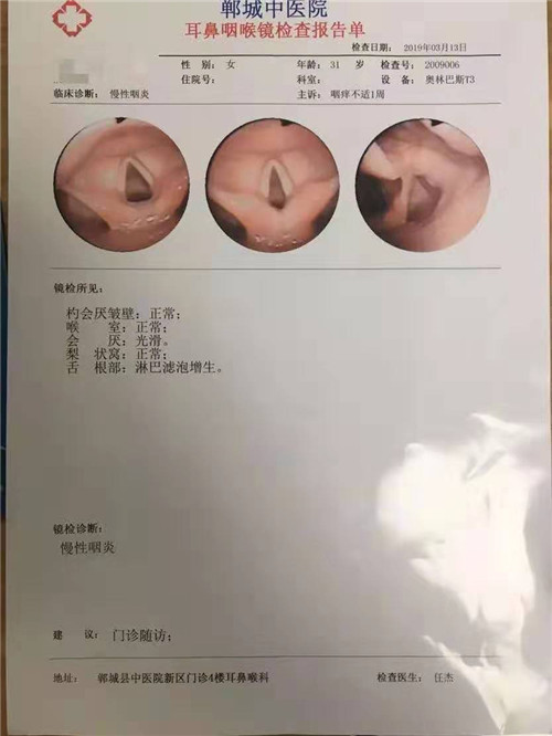 鄲城縣中醫(yī)院為進一步提高耳鼻喉臨床診療水平,更好地為廣大耳鼻喉患者服務。近日,新引進的纖維喉鏡系統(tǒng)(奧林巴斯T3)及工作站等設備正式調(diào)試完成,并投入使用。3月13日,完成第一例病人診療報告打印。