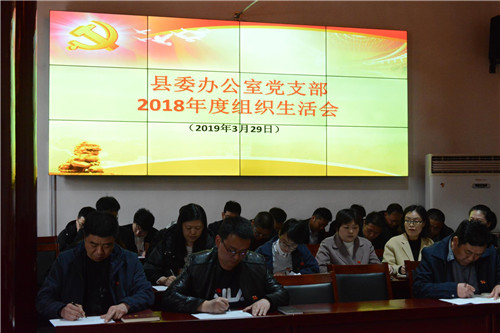 3月29日下午,鹿邑縣委辦公室黨支部召開(kāi)2018年度組織生活會(huì)并開(kāi)展民主評(píng)議黨員活動(dòng)??h委書(shū)記梁建松,縣委常委、辦公室主任宋濤以一名普通黨員身份參加會(huì)議??h委辦公室機(jī)關(guān)全體同志參加會(huì)議。