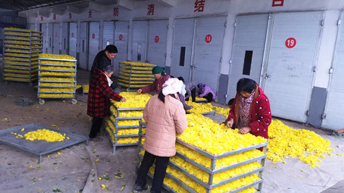 “我們提供優(yōu)質種苗給種植戶,并且提供免費的技術指導以及技術培訓,群眾在種植金絲皇菊的過程中遇見問題都可以隨時來咨詢;在金絲皇菊成熟后我們會對老百姓所種植的菊花進行保底收購,保證種植戶的利潤不受影響?!睋私?,目前僅張辛行政村就有菊花種植合作社3個,種植金絲皇菊、雪菊、貢菊等各類菊花近千畝,帶動全村貧困人員由原來的303戶、998人下降至現(xiàn)在的7戶、18人,全村人靠種植菊花實現(xiàn)創(chuàng)收致富。