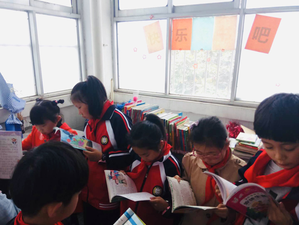 為迎接世界讀書日的到來,引導學生“在閱讀中成長,在成長中閱讀”,養(yǎng)成終身閱讀的好習慣,周口六一路小學在全校范圍內創(chuàng)建班級圖書角,每個班級圖書角的藏書超過百冊。圖為孩子們在圖書角認真閱讀。