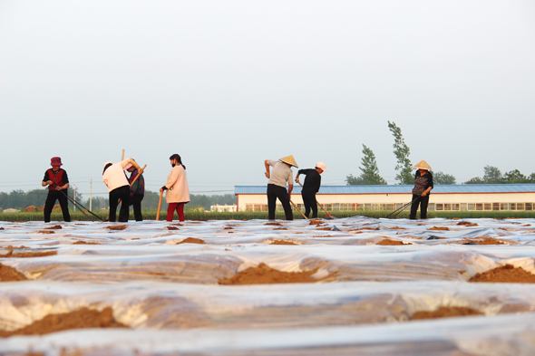 4月27日,留守婦女鐘點工在商水縣郝崗鎮(zhèn)東洄村劉雙翼的煙葉示范田中移栽、管理煙苗。郝崗鎮(zhèn)把煙葉生產作為扶貧產業(yè)來抓,在幫助種煙大戶流轉土地的同時,推廣優(yōu)質品種栽植、節(jié)水灌溉新技術,提高煙葉品質,增加煙農收入。