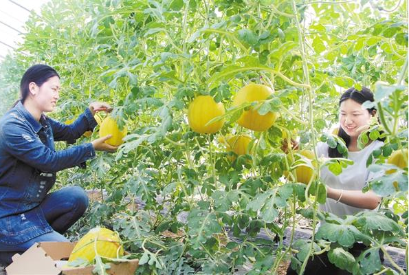 昨日上午,兩名工作人員正在基地采摘已經成熟的黃皮吊蔓西瓜。近年來,扶溝縣狠抓瓜菜產業(yè)發(fā)展,將其作為鄉(xiāng)村振興的主導產業(yè)之一,不斷加以推進,相繼引進、推廣20多個新品種瓜菜。目前,該縣瓜菜種植面積已達50萬畝,菜農人均純收入達4000元以上。