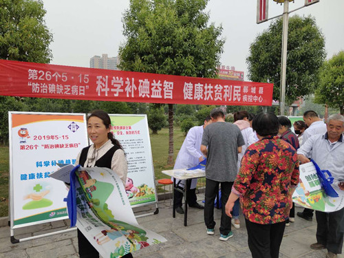 此次宣傳活動正值鄲城縣萬人健步走啟動儀式即將開始,近千名市民先后來到展臺前積極咨詢,宣傳收到了事半功倍的效果。活動中,工作人員向市民發(fā)放3000余份防治碘缺乏病宣傳折頁、宣傳畫、科學(xué)用鹽小常識,送出500多個印有補碘知識的環(huán)保手提袋,并講解碘缺乏病的危害、怎樣科學(xué)補碘、如何辨別真假碘鹽等知識,切實提高大家鑒別碘鹽、科學(xué)補碘的能力。