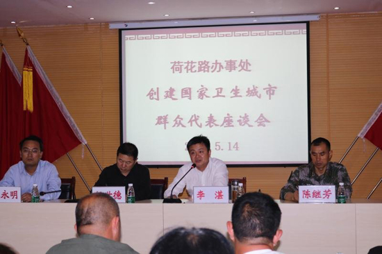 5月14日晚8時(shí),區(qū)長李湛主持召開荷花路辦事處創(chuàng)建國家衛(wèi)生城市群眾代表座談會(huì)。區(qū)人大黨組成員任世德、區(qū)檢察院檢察長郭煜、區(qū)武裝部長陳繼芳出席。荷花辦科級干部、社區(qū)書記、轄區(qū)黨員和群眾代表100多人參加。