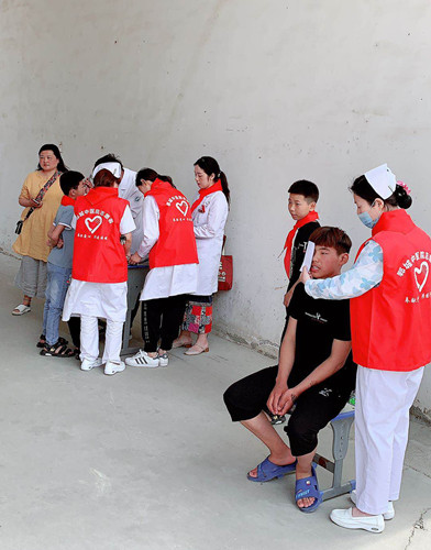 特別令人暖心的是,鄲城縣中醫(yī)院的醫(yī)務(wù)志愿者為孩子們做免費體檢。