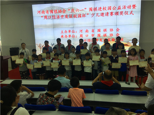 活動(dòng)中,來(lái)自我市各地的百余名圍棋小選手們齊聚一堂,切磋棋藝,以特殊的方式慶祝六一兒童節(jié)。省圍棋協(xié)會(huì)向周口經(jīng)濟(jì)開(kāi)發(fā)區(qū)實(shí)驗(yàn)學(xué)校捐贈(zèng)了小學(xué)生圍棋教材、圍棋題集等圍棋書(shū)籍和器具。
