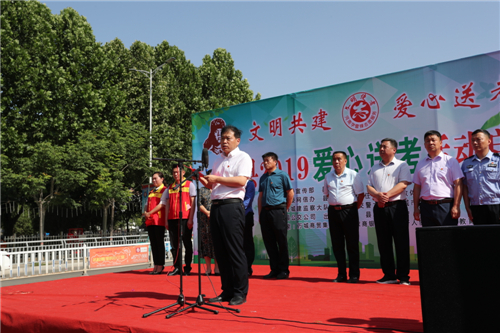 六月麥?zhǔn)焓锵?,愛心送考又起航?月4日上午,由太康縣委宣傳部、縣文明辦主辦,縣委網(wǎng)信辦、縣城管局、縣住建局、縣教體局、縣公安局、縣文廣旅局承辦的“文明共建 愛心送考”公益活動正式啟動。縣委常委、宣傳部長謝成營出席活動并講話。