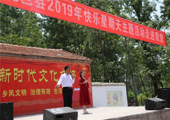 器樂演奏、豫劇、歌曲、舞蹈、健身舞等在鄉(xiāng)村文化廣場次第演出,現(xiàn)場精彩不斷,高潮迭起……6月23日,由鹿邑縣委宣傳部、統(tǒng)戰(zhàn)部、縣文聯(lián)主辦的“快樂星期天”系列主題活動,在王皮溜鎮(zhèn)普小莊村、觀堂鎮(zhèn)郭窯村文化廣場如期拉開大幕,來自縣文聯(lián)各大協(xié)會的志愿者為廣大群眾送上兩場豐富多彩的“文藝大餐”。
