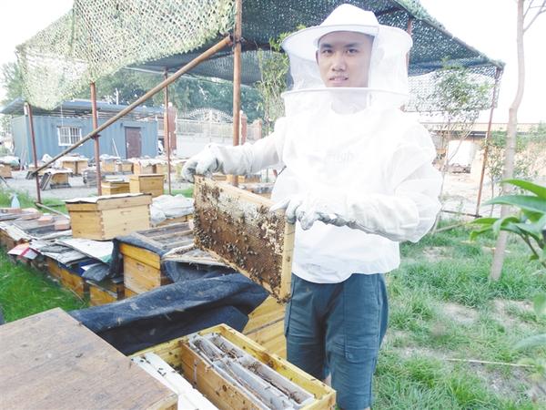 6月24日,沈丘縣付井鎮(zhèn)九里村的退伍軍人蘇尚方,正小心翼翼地從蜂箱里取出蜂蜜板,準備采收蜂蜜?!拔茵B(yǎng)了120多箱蜜蜂,年產(chǎn)蜂蜜3000多公斤,經(jīng)濟收入十分可觀。”蘇尚方說,他專門成立了蘇家養(yǎng)蜂專業(yè)合作社,帶領(lǐng)當?shù)刎毨粢黄鹈撠氈赂弧Vx辛凌 攝