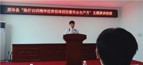 今年6月是全國第18個“安全生產(chǎn)月”,為牢固樹立安全發(fā)展理念,增強全民安全生產(chǎn)意識。6月28日下午,西華縣舉辦“踐行訓詞精神擔責擔難擔險暨安全生產(chǎn)月”主題演講比賽,來自應急管理系統(tǒng)的15名選手齊聚賽場,以一個個生動的故事和深入人心的道理,深刻闡述了“安全”的內涵。