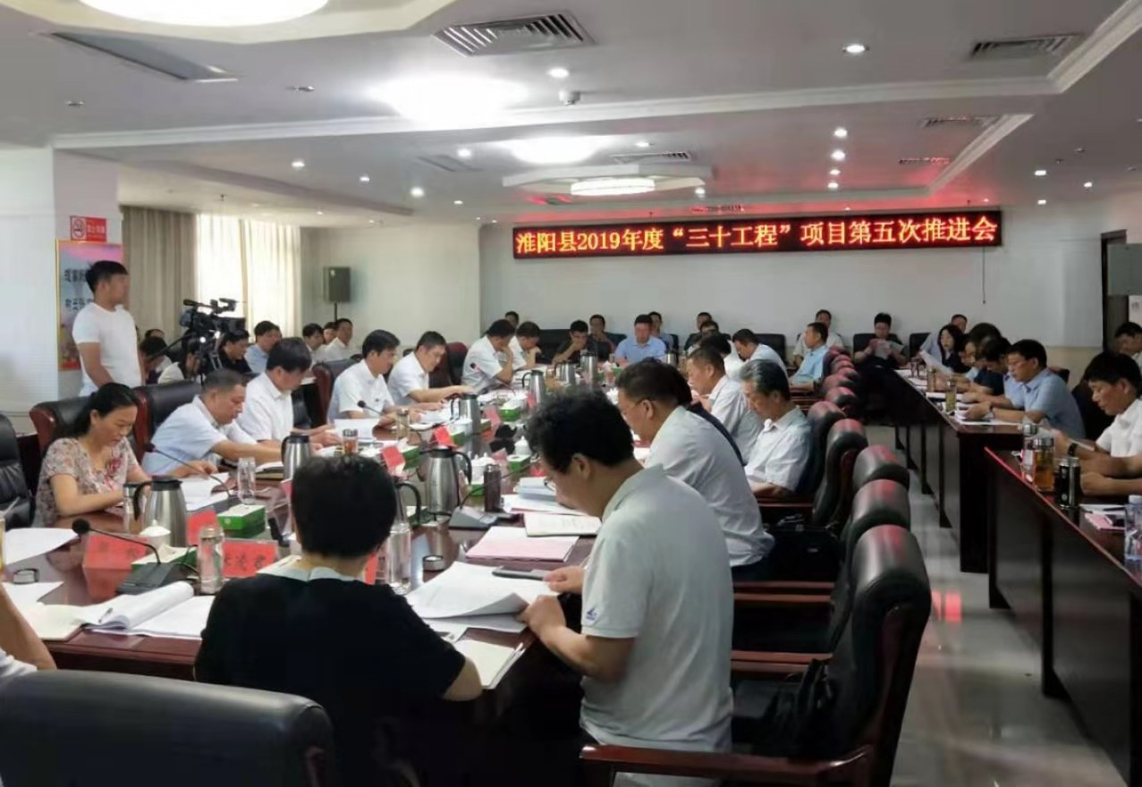 7月1日上午,淮陽縣召開2019年“三十工程”項目第五次推進會議。馬明超、王毅、蘇中林、馬自成、謝留定、董鴻、劉淑杰、李祥生、劉大明、劉元濤、鄒松等四個班子領(lǐng)導(dǎo)和項目指揮部副指揮長及相關(guān)單位負責人參加會議。會議回顧總結(jié)上半年的項目建設(shè)工作,安排部署下一階段的重點項目建設(shè)工作。