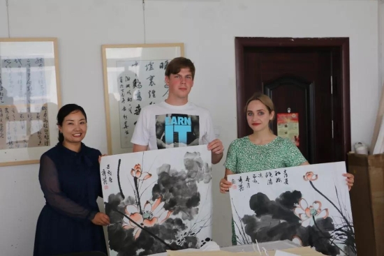鹿邑本土畫家劉龍飛畫的花鳥栩栩如生引起俄羅斯青年畫家們的嘖嘖稱嘆。兩位青年畫家通過翻譯告訴記者,中國(guó)畫歷史悠久、博大精深,看到兩位老師的畫作形神兼?zhèn)?,氣韻生?dòng),真是不虛此行,感謝贈(zèng)送的佳作,他們一定珍藏。據(jù)悉,本次活動(dòng)他們將以國(guó)際藝術(shù)志愿者的身份、以西方人的視角描繪老子故里的美景,他們走進(jìn)明道宮、太清宮等景點(diǎn)實(shí)地寫生,并走美術(shù)學(xué)校為孩子們輔導(dǎo)繪畫并帶來世界名校的繪畫理念。