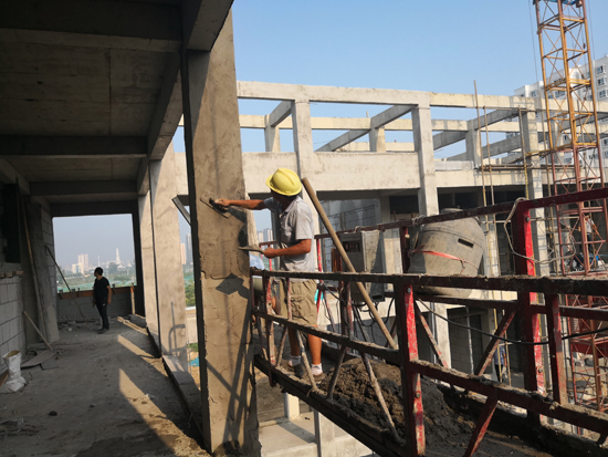 當(dāng)日上午,記者在施工現(xiàn)場(chǎng)看到,雖然天氣炎熱,但是每項(xiàng)工程都進(jìn)展有序,部分已經(jīng)封頂?shù)臉欠空谶M(jìn)行后續(xù)施工,未封頂?shù)臉欠恳舱诰o張施工中,整個(gè)施工現(xiàn)場(chǎng)電鉆聲、切割聲此起彼伏,一派熱烈的施工景象。