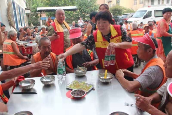 當(dāng)日早上,環(huán)衛(wèi)工人像往常一樣陸續(xù)來到愛心粥屋,300多人整整坐滿35桌??h總工會(huì)副主席李寧帶領(lǐng)干部職工拉著物資早早來到愛心粥屋。就餐中,縣總工會(huì)干部職工志愿者一桌一桌挨著發(fā)放毛巾和礦泉水,并叮囑他們在工作中熱了歇歇腳、擦擦汗、渴了喝口水。就餐結(jié)束后,李寧代表太康縣總工會(huì)向愛心粥屋捐贈(zèng)現(xiàn)金1萬元現(xiàn)金,愛心粥屋發(fā)起人焦陽光和環(huán)衛(wèi)工人代表郭師傅接收捐助并轉(zhuǎn)交財(cái)務(wù)開票入賬。
