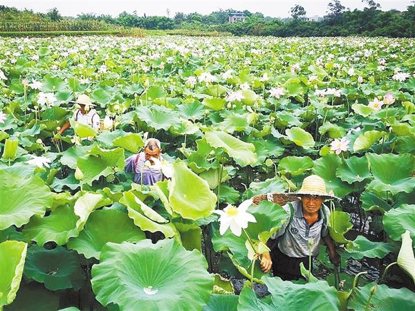 盛夏時(shí)節(jié),沈丘縣卞路口鄉(xiāng)南郭莊村400畝荷塘里的蓮蓬成熟,荷塘里一片繁忙景象。近年來,該村因地制宜,種植蓮藕,讓村民增收不少。