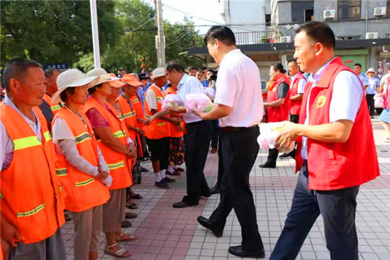 8月8日,扶溝縣政協(xié)主席張建中帶領(lǐng)縣政協(xié)委員和政協(xié)機(jī)關(guān)志愿者到縣城桐丘路視察文明城市創(chuàng)建工作,并看望慰問環(huán)衛(wèi)工人和城管工作人員。縣政協(xié)常委田孟偉代表達(dá)理家居有限公司捐贈(zèng)價(jià)值2萬余元防暑降溫用品,助力扶溝縣省級(jí)文明城市創(chuàng)建工作。