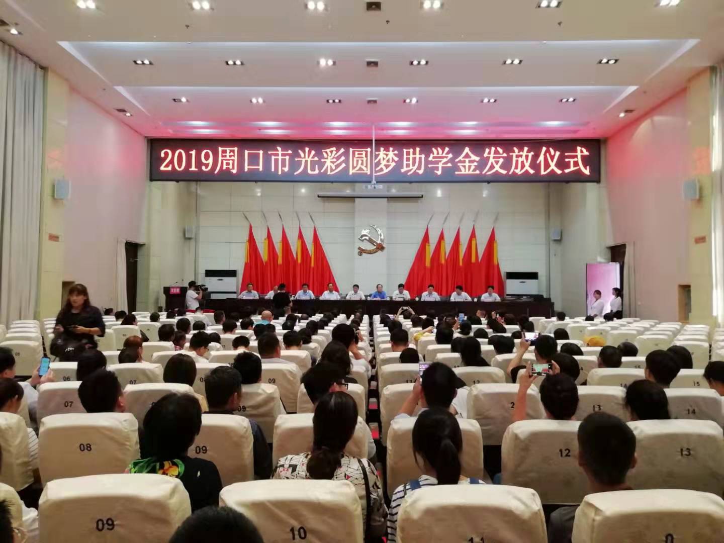 8月30日上午,2019年周口市“光彩圓夢(mèng)”助學(xué)金發(fā)放儀式在川匯區(qū)舉行。市政協(xié)副主席、市工商聯(lián)主席趙萬俊,老領(lǐng)導(dǎo)李紹彬、白明寬,市委統(tǒng)戰(zhàn)部副部長(zhǎng)、市工商聯(lián)黨組書記李飛,川匯區(qū)區(qū)委書記李宗喜,市工商聯(lián)副主席、周口市商會(huì)黨委書記徐公俊,市扶貧辦副主任程衛(wèi)東,川匯區(qū)區(qū)委常委、統(tǒng)戰(zhàn)部長(zhǎng)宋煜及市直、區(qū)直有關(guān)單位負(fù)責(zé)同志出席儀式。