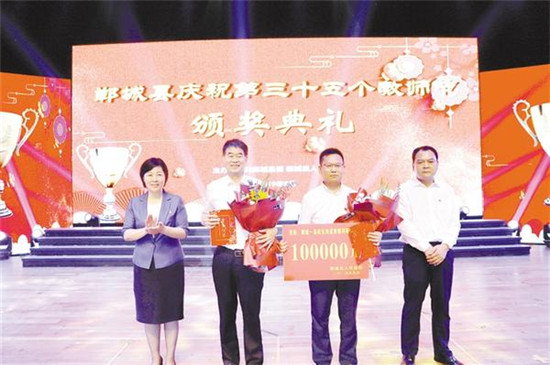頒獎儀式上,該縣隆重表彰了2019年尊師重教先進單位、十佳師德標兵、最具影響力校長、先進小學幼兒園、先進初中、先進中心校、2019年高招目標管理先進單位、職業(yè)學校先進單位等。其中,獎勵鄲城一高教科研經(jīng)費245萬元、獎勵鄲城二高教科研經(jīng)費53萬元,授予縣教體局局長劉現(xiàn)營、鄲城一高校長劉成章2019年鄲城教育突出貢獻獎,并獎勵劉成章獎金10萬元。