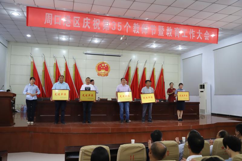 大會(huì)首先對2018-2019學(xué)年港區(qū)教育工作進(jìn)行回顧總結(jié),并對新學(xué)年的工作進(jìn)行安排部署。隨后宣布《中共周口港口物流產(chǎn)業(yè)集聚區(qū)委員會(huì)、周口港區(qū)物流產(chǎn)業(yè)集聚區(qū)管理委員會(huì)<關(guān)于表彰2019年港區(qū)教育系統(tǒng)優(yōu)秀校長、優(yōu)秀教師、先進(jìn)工作者、先進(jìn)單位>的決定》,區(qū)領(lǐng)導(dǎo)為先進(jìn)單位和個(gè)人頒獎(jiǎng)。