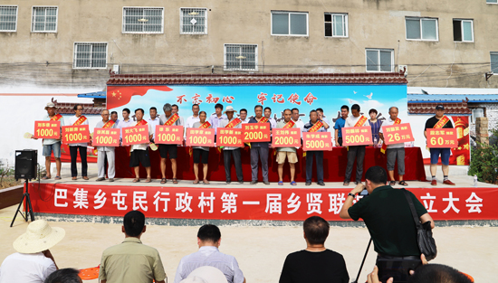 “段志軍每年都捐資捐物回報家鄉(xiāng),他去年捐30萬為巴集大街和屯民村安裝的200多盞路燈已經(jīng)亮了,捐85萬元新建的村室馬上竣工,將是全縣標(biāo)準(zhǔn)最高的,現(xiàn)在又捐60萬元;劉振發(fā)這幾年捐了40萬多,給村里修路、栽樹、幫扶貧困戶,今天又捐26萬;鄉(xiāng)賢會成立之前,大家已累計捐款240多萬元……”在今年8月6日屯民行政村鄉(xiāng)賢會成立儀式上,朱明理宣布捐款名單時多次被雷鳴般的掌聲打斷;“最難忘的就是村口的那棵大楊樹,最好吃的就是中午剩的涼面條、晚上嗑著大蒜吃?!痹谌T峽創(chuàng)業(yè)的劉振發(fā)的發(fā)言勾起了眾多游子的親情回憶;“啃個干饃,灶火里燒個辣椒一砸,撒點(diǎn)兒鹽就是最好吃的?!痹谏糖鹑温毜男炱渖浇舆^話茬說;“事業(yè)越大,工作越忙。但是,他們從四面八方歸來,這就是對家鄉(xiāng)的情誼,我們村肯定會越來越好?!编l(xiāng)賢徐其民感慨地說;“從屯民走出的大學(xué)生不少,如今長成了企業(yè)家、行政干部等等,如參天大樹,卻不忘根、不忘本,這就是屯民的驕傲。”從事教育行業(yè)35年的鄲城二高校長趙耀身為屯村一員感觸良多……