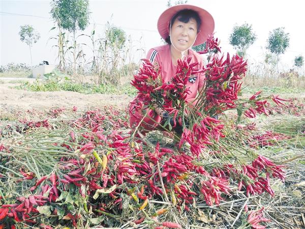 近日,扶溝縣汴崗鎮(zhèn)的辣椒種植戶們迎來豐收。汴崗鎮(zhèn)積極引導農(nóng)民調(diào)整種植結構,大力發(fā)展“訂單式”辣椒產(chǎn)業(yè),成為遠近聞名的辣椒種植專業(yè)鎮(zhèn),推動了脫貧攻堅工作和鄉(xiāng)村振興戰(zhàn)略實施。圖為該鎮(zhèn)于營行政村村民李素英向記者展示豐收的辣椒。記者 謝永靜 攝