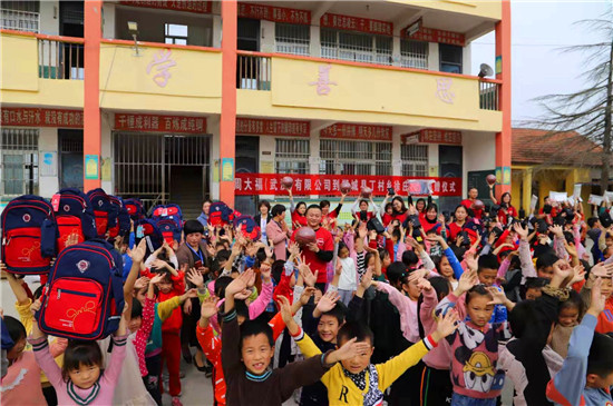 當(dāng)日上午,周大福集團組織了15名員工組成義工隊,在周口區(qū)域負(fù)責(zé)人王保安的陪同下,帶著總價值3萬余元的300套愛心物資,送到學(xué)生手中?,F(xiàn)場,他們與學(xué)生愛心互動、親切交流,為學(xué)生們背上書包、送上文具,關(guān)心學(xué)生生活和學(xué)習(xí)情況。當(dāng)了解到學(xué)校資金緊張,師生還沒有統(tǒng)一服裝時。岳磊等人表示,將向上級申請,下一步積極為該校師生解決工作裝和校服問題。對此,徐莊小學(xué)師生熱烈鼓掌表示感謝。