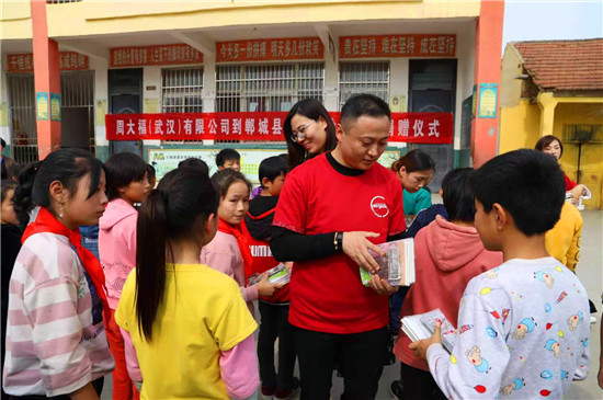 10月24日,周大福河南區(qū)域負(fù)責(zé)人岳磊一行15人,帶著書包、文具、足球、藍球等學(xué)習(xí)用品,來到鄲城縣丁村鄉(xiāng)徐莊小學(xué),為200余名學(xué)生送來了愛心大禮包。并為兩戶貧困戶送去了米面油等慰問品。