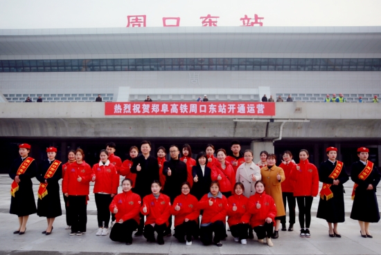 為慶祝鄭阜高鐵首發(fā),同時(shí)給乘客營(yíng)造一個(gè)溫馨舒適的乘車(chē)環(huán)境,提升城市溫度,12月1日,在團(tuán)市委的組織下,來(lái)自周口職業(yè)技術(shù)學(xué)院的80名青年志愿者聚集在周口東站,開(kāi)展志愿服務(wù)活動(dòng)。記者在現(xiàn)場(chǎng)看到,志愿者身穿統(tǒng)一服裝,分布在站前廣場(chǎng)、售票廳、進(jìn)站口、候車(chē)廳的各個(gè)角落,他們有的幫助乘客取票;有的引導(dǎo)乘客,幫助乘客進(jìn)站;有的則幫助車(chē)站工作人員分散客流量等。志愿者們積極熱情的工作態(tài)度,得到了廣大乘客的好評(píng)。