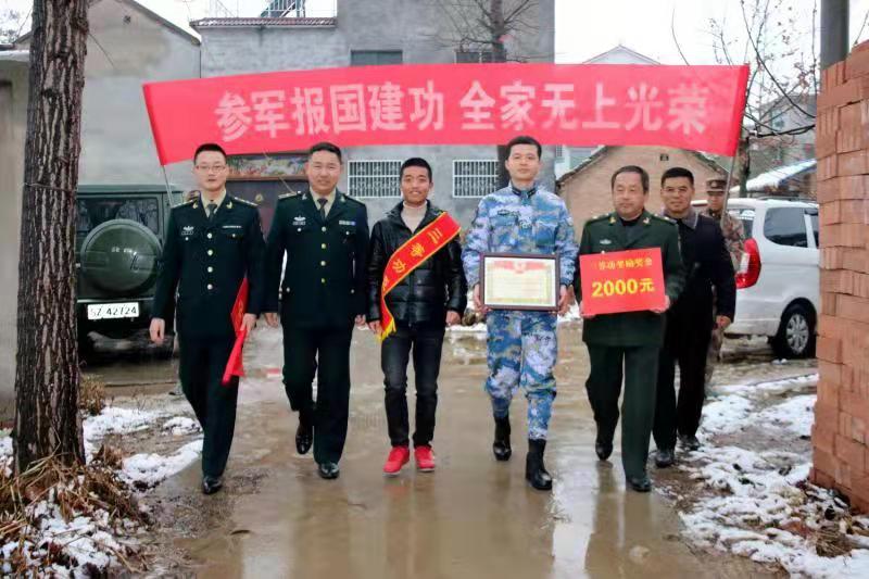 就在這樣一個(gè)瑞雪初降喜盼豐年的日子,穆店鄉(xiāng)四大王村熱鬧非凡。鹿邑縣人武部、退役軍人事務(wù)局、穆店鄉(xiāng)政府帶領(lǐng)96766部隊(duì)人員,專程來(lái)到從該村入伍的三級(jí)士官李龍家中,送上三等功喜報(bào)和慰問(wèn)金。面對(duì)鄉(xiāng)親們羨慕的目光,李龍的母親陳秀英興高采烈地說(shuō):“俺要叮囑兒子繼續(xù)在部隊(duì)好好干,爭(zhēng)取再立新功!”