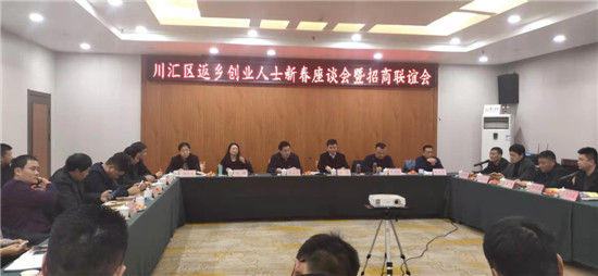 1月22日下午,川匯區(qū)舉行返鄉(xiāng)創(chuàng)業(yè)人士新春座談會(huì)暨招商聯(lián)誼會(huì),區(qū)委書記李宗喜、區(qū)長(zhǎng)李湛、區(qū)委常委劉娟、高新區(qū)管委會(huì)主任張興龍出席會(huì)議。各街道辦事處主任、區(qū)直有關(guān)單位負(fù)責(zé)人,20名返鄉(xiāng)創(chuàng)業(yè)人士代表參加會(huì)議。