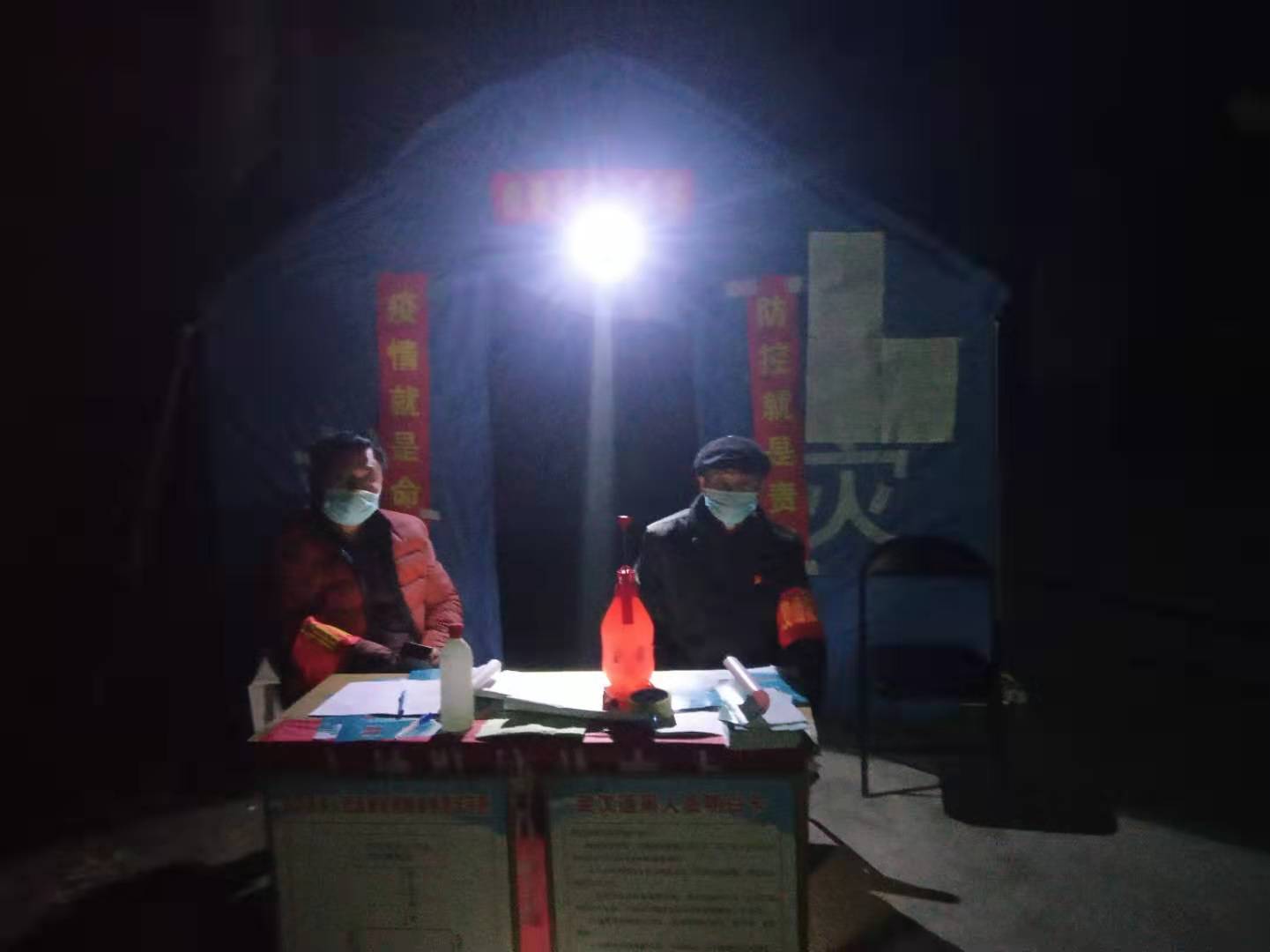北岳村是白寺鎮(zhèn)最大的村,有大小出村路口20多個(gè),疫情防控難度大。該村除村干部、村醫(yī)以外,又動(dòng)員了教師、黨員、志愿者80余人參與卡點(diǎn)值班。自1月26日大年初二設(shè)立卡點(diǎn)以來,24小時(shí)都有人值班,吃飯輪班,有的把飯送過來吃。晚上留專人住在帳篷里。9天來,這個(gè)卡點(diǎn)已累計(jì)勸返人員280人次,勸返車輛80多輛次,登記進(jìn)出村莊人員430人次。