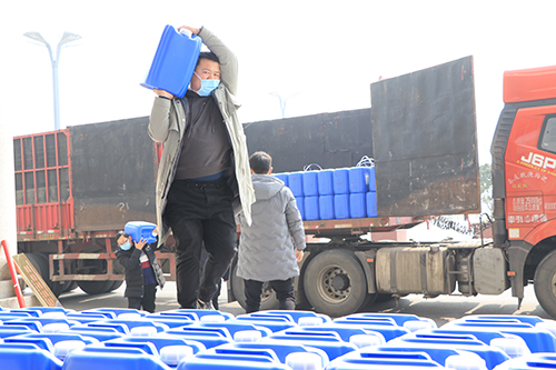 該公司總經(jīng)理馬媛媛介紹,她老家是周口的,在鄭州開辦的公司,公司業(yè)務(wù)主要是搞醫(yī)療物質(zhì)配送?!爱?dāng)前嚴(yán)峻的疫情形勢(shì)真得讓人很擔(dān)心,為了能夠給家鄉(xiāng)提供一些力所能及的幫助,公司特意購(gòu)置了這批醫(yī)用物質(zhì)以解家鄉(xiāng)防控疫情的燃眉之急。”馬媛媛介紹,為了能在市場(chǎng)上購(gòu)到這批貨物,公司從除夕晚上就開始聯(lián)系貨物,打了近百個(gè)電話,直到大年初四才在山東的一家公司聯(lián)系到貨源,排了6天隊(duì)之后,才購(gòu)到10000斤消毒液、4000副醫(yī)用手套,貨到之后,公司馬不停蹄,立即拉了過(guò)來(lái),讓這批貨物盡快派上用場(chǎng)。