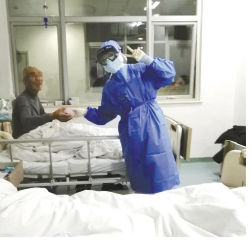 “這是我們應(yīng)該做的工作。您辛苦了,一定要加油哦。”做完檢測(cè)、量完體溫,胡奔奔將9號(hào)床患者的手輕輕放進(jìn)被子,并為他掖了掖被角。