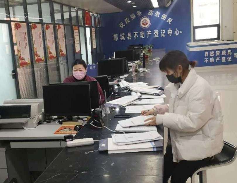 2月29日上午,鄲城縣不動產(chǎn)登記中心為縣方遠(yuǎn)建設(shè)集團(tuán)開通“綠色通道”,加班為該企業(yè)辦理不動產(chǎn)登記業(yè)務(wù)。