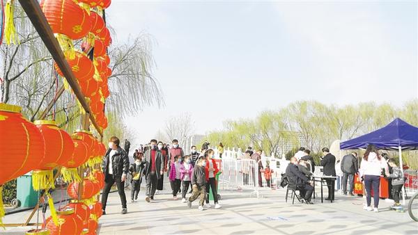 記者沿周口公園主干道向里走看到,路旁的花燈鮮艷奪目,如意湖邊楊柳依依,園內迎春花開、玉蘭飄香,滿園春色如期而至。記者發(fā)現(xiàn),游客們三三兩兩的,主要以家庭為單位一起游玩,沒有出現(xiàn)扎堆現(xiàn)象。