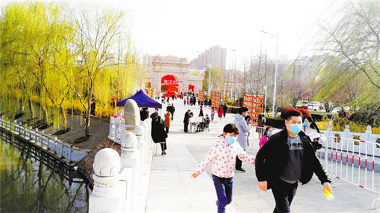 本報訊 3月10日,天氣晴朗,暖意融融,關閉一個多月的周口公園開園迎客第二天,記者在周口公園看到,游客都戴著口罩,經(jīng)登記、測溫后依次入園,園內秩序井然。